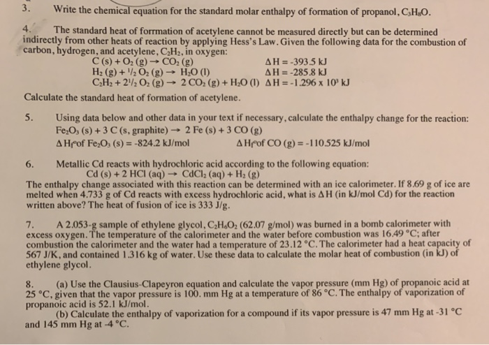 Solved 3 Write The Chemical Equation For The Standard Molar Chegg Com