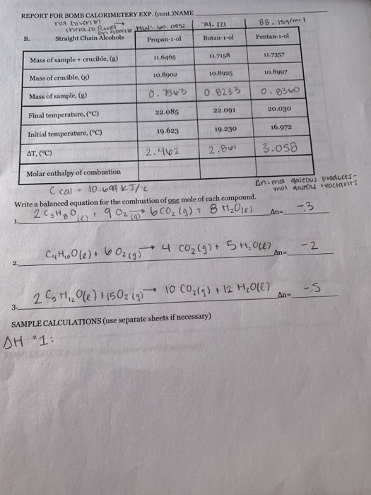 Solved Molar Enthalpy Of Combustion Hello How Can I Find Chegg Com